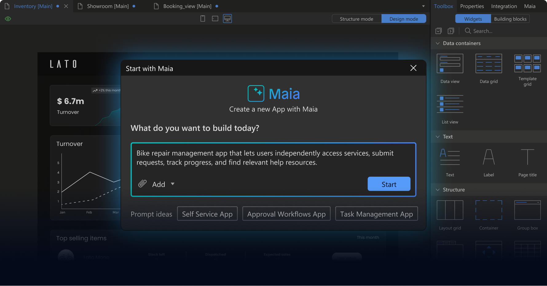 Low-code is a modern way of building applications that moves beyond traditional coding. Instead of writing every line of code, developers and business experts work in a visual, model-driven environment. With drag-and-drop building blocks and reusable components, teams of all skill levels can build and deploy enterprise-grade apps faster, with less complexity. This speed is further amplified by AI-assisted development features, like Mendix's MAIA (Mendix AI Assistant), which intelligently guides developers and automates repetitive tasks.