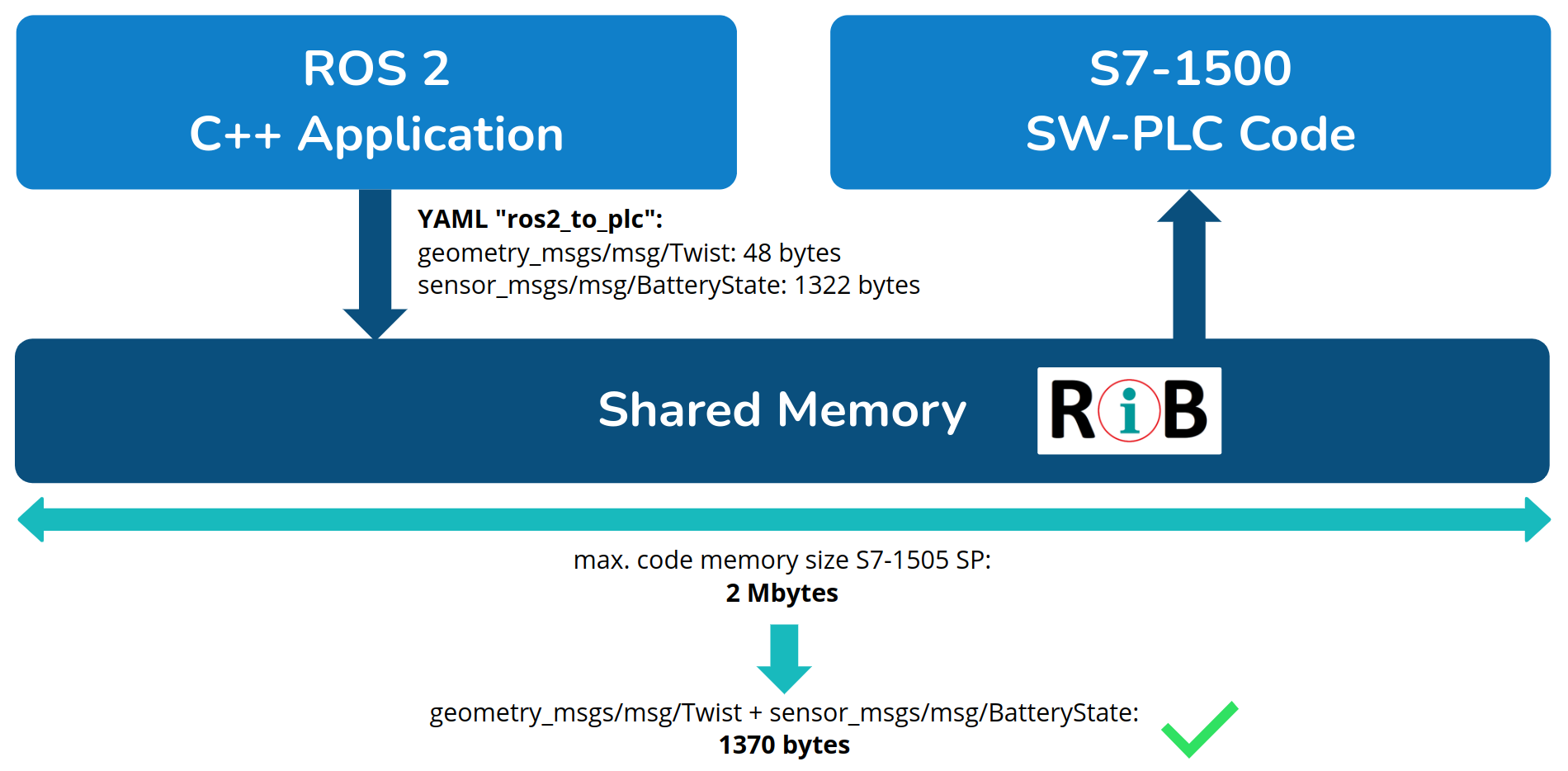 ⚠️ Note: As those limitations are defining the total PLC code memory limit, the used ROS 2 .msg typse that needs to be transfered to the PLC or vice versa should not be too big regarding memory layout.